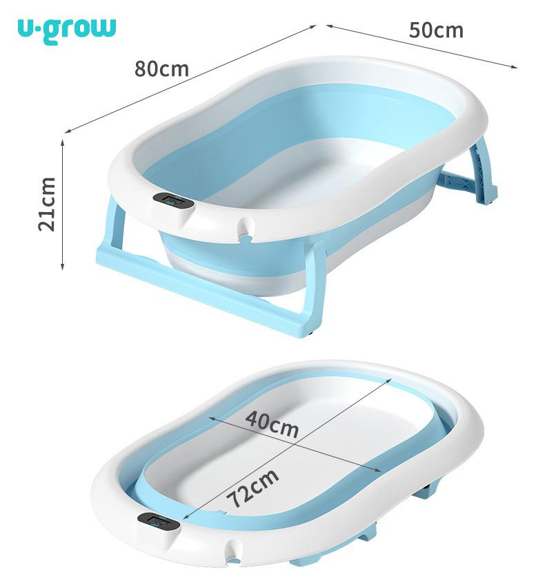 Cadita cu pernuta pentru bebelusi, termometru digital incorporat, pliabila, dop se scurgere, picioare anti-alunecare , blue, U-Grow