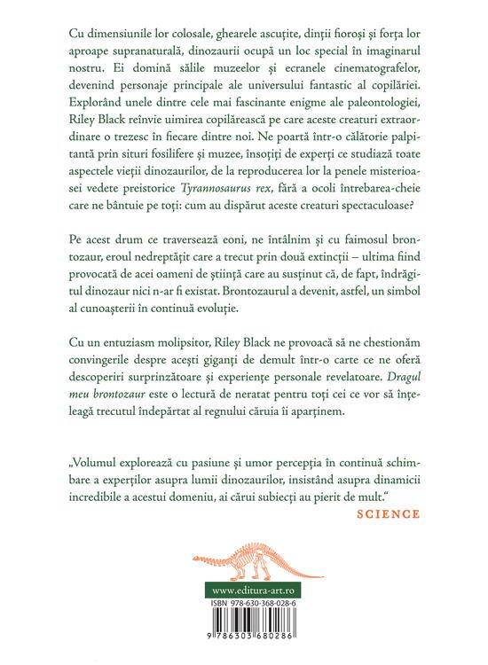 Dragul meu brontozaur este o lectură de neratat pentru toți cei ce vor să înţeleagă trecutul îndepărtat al regnului căruia ii aparţinem.