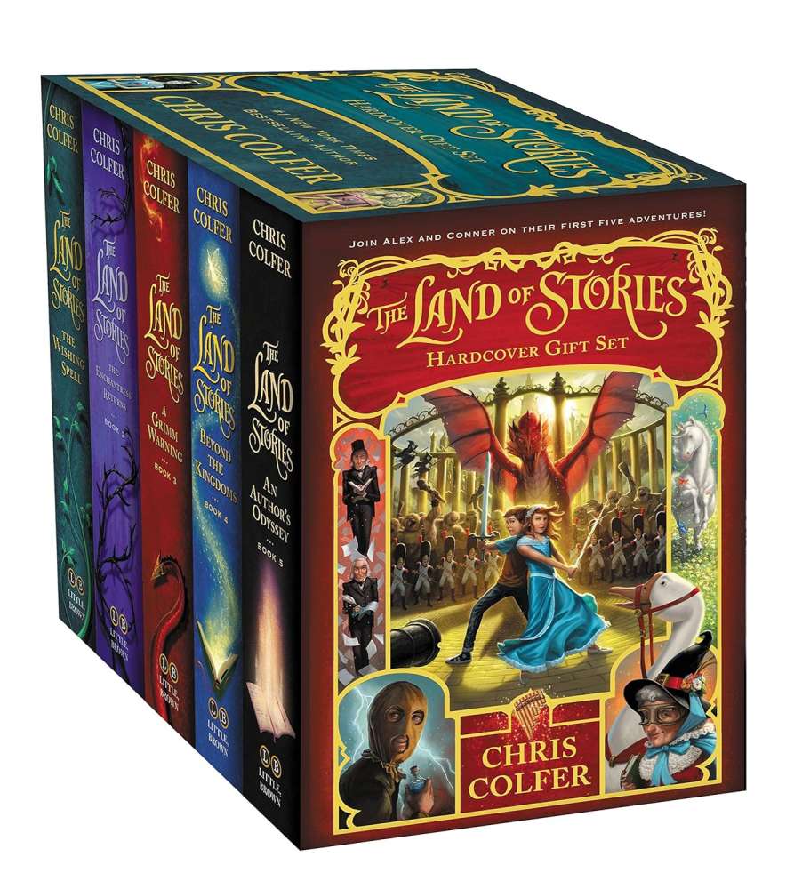 Dive into the first five hardcover volumes in the #1 New York Times bestselling series The Land of Stories with this beautiful gift set. Through the mysterious powers of a cherished book of stories, twins Alex and Conner leave their world behind and find themselves in a foreign land full of wonder and magic where they come face-to-face with the fairy tale characters they grew up reading about. #1 New York Times bestselling author Chris Colfer invites readers to join Alex and Conner on their fairy tale adventures from the beginning in this gorgeous hardcover gift set, which includes all five books in the Land of Stories series: The Wishing Spell, The Enchantress Returns, A Grimm Warning, Beyond the Kingdoms, and An Author's Odyssey.